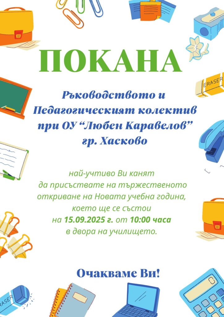 Ръководството и Педагогическият екип на ОУ „Любен Каравелов“ Ви канят на 22.04.2024 г. на